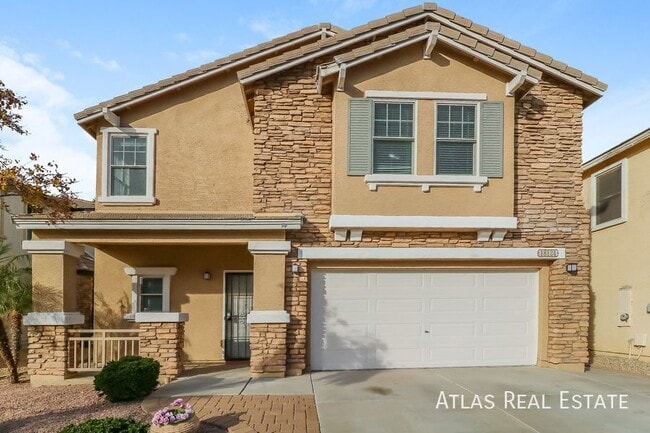 Come and tour this fantastic 3 bed, 2.5 bath residence in the Surprise Farms III community. The exterior of the home features stone accents, a cozy front porch, low maintenance landscape and 2 car garage! Inside you will find a spacious living area and all new plank flooring throughout the house. The eat-in kitchen features new quartz countertops, pantry, track lighting and Stainless Steel appliances. The primary bedroom features an ample sized closet and ensuite w/dual vanities. Don't wait too long, homes in Surprise are leasing quickly!