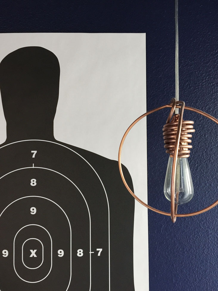 Copper is still trending right now and is a great visual element in a space. The concrete bottom adds texture to the fixture. You can mix it up and add color to the concrete and/or the pipe.