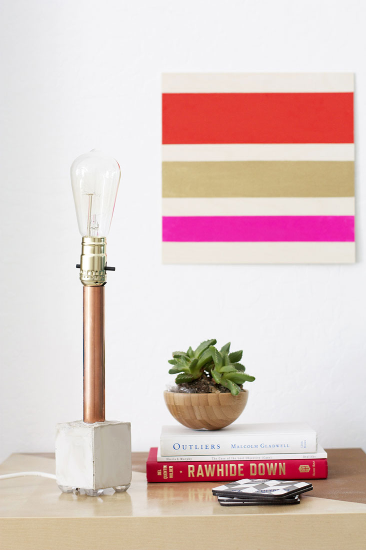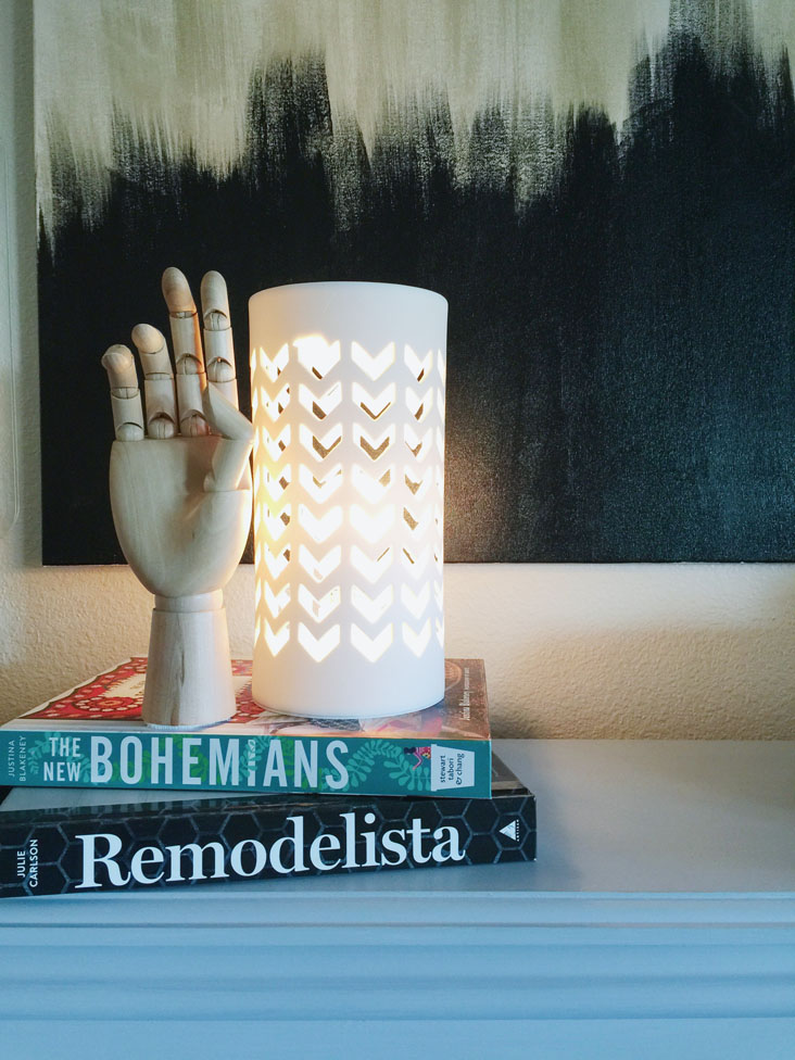 I love the simplicity of this lamp. It’s one you can make in an afternoon and use on a shelf, table, desk or nightstand.