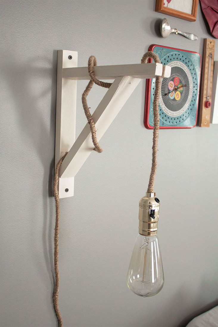 The second option is to grab a light cord that plugs in and add a hook to the ceiling, draping it down over a certain area.