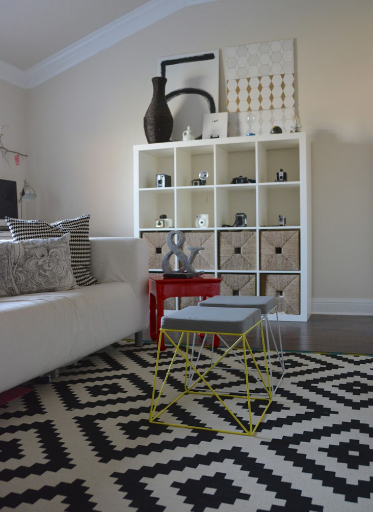 When I bought these stools, I knew I wanted to place them in our multipurpose room. We use this space for an office, living and game room.