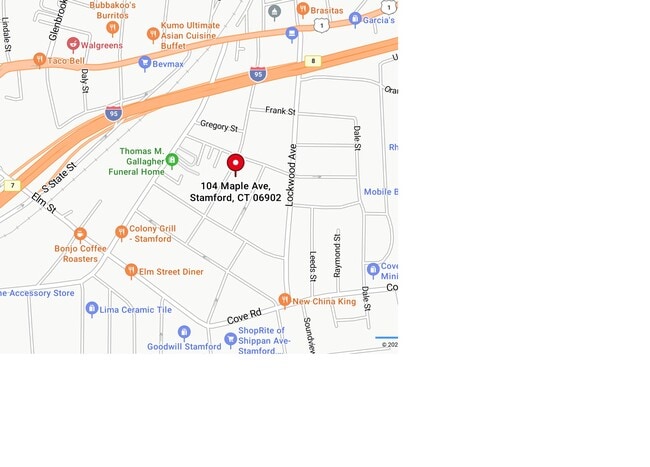 Shoppers will appreciate 104 Maple Ave proximity to Clarks Hill Plaza, Stamford Town Center, and Ridgeway Shopping Center. Clarks Hill Plaza is 0.6 miles away, and Stamford Town Center is within a 19 minute walk.
