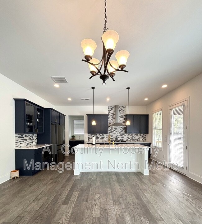 Esta residencia unifamiliar con orientación norte se encuentra en la urbanización Easley de Woodstock, Georgia. La casa ofrece un amplio espacio habitable y... cuenta con cinco dormitorios y cuatro baños completos. La distribución interior incluye un vestíbulo de entrada de dos pisos, un comedor formal con despensa y una sala de estar. La planta principal cuenta con un dormitorio y un baño completo, mientras que la planta superior dispone de cuatro dormitorios, tres baños, un altillo y un cuarto de lavandería independiente. La propiedad también incluye un sótano sin terminar y un garaje para dos coches. La cocina está equipada con una isla de cuarzo, una despensa y armarios con cierre suave. Los electrodomésticos incluidos son un frigorífico, lavavajillas, horno, campana extractora y microondas. Se proporciona lavadora y secadora para mayor comodidad del inquilino. La casa cuenta con suelos de madera noble en la planta principal y moqueta de alta calidad en los dormitorios. Las características exteriores incluyen un porche delantero cubierto con columnas de cedro y un patio trasero cubierto. Las comodidades comunitarias disponibles para los residentes incluyen una piscina, casa club, parque para perros, senderos para caminar y canchas deportivas. La propiedad se encuentra en una prestigiosa zona escolar del condado de Cherokee. Se permiten hasta dos mascotas, incluyendo perros y gatos de menos de 34 kg (75 libras). El inquilino es responsable de todos los gastos de servicios públicos y del mantenimiento regular del jardín. La administración local y profesional está a cargo de All County Property Management North Metro, que ofrece un proceso de arrendamiento sencillo con visitas autoguiadas disponibles.