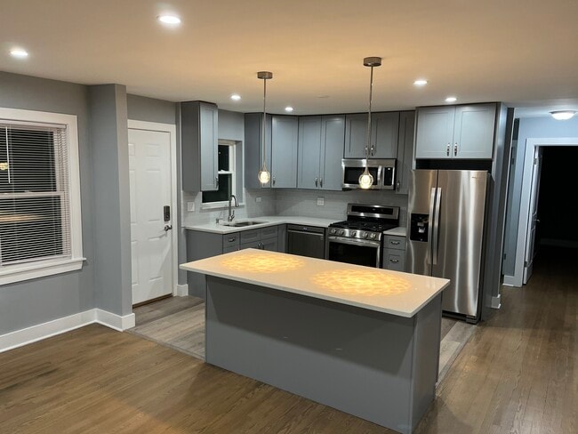 Apartamento de 3 habitaciones y 1 baño completamente renovado en el corazón de Skokie. Un apartamento muy limpio y tranquilo que cuenta con elementos de lujo... como: electrodomésticos de acero inoxidable, lavandería en la unidad, HVAC de alta eficiencia con termostato inteligente, encimeras de cuarzo, luces LED empotradas regulables en todas partes. Patio trasero de buen tamaño para asar a la parrilla y entretenerse. Fácilmente accesible a restaurantes y tiendas. Se requiere verificación de antecedentes/crédito y todas las solicitudes están sujetas a verificación de empleo y ocupación de alquiler anterior. Se requiere una puntuación de 720+ en el informe de antecedentes/crédito. 500 - Tarifa de mudanza no reembolsable. El inquilino paga la electricidad y el gas.
