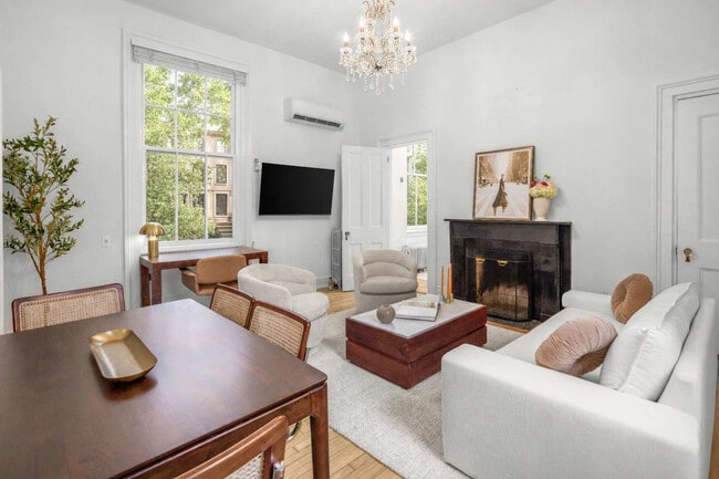 La tarifa anunciada de $14,148 al mes es el precio más bajo disponible, basado en una estadía de 1 mes con fecha de mudanza el 2 de abril de 2026. Las tarifas... varían según la duración de la estadía, la temporada y otros parámetros. Para conocer el precio exacto y otros componentes del precio, visite nuestro sitio web e ingrese las fechas de entrada y salida deseadas. La tarifa se aplica al facturar por adelantado; puede ser mayor si se factura en varios pagos. Siéntase como en casa en este magnífico apartamento de 1 dormitorio en Greenwich Village, ubicado en el segundo piso de una casa adosada meticulosamente mantenida. Este apartamento extragrande combina la elegancia histórica con mejoras modernas. La luz del sol se cuela a través de los amplios ventanales orientados al sur, resaltando los altos techos de 3.5 metros, dos chimeneas decorativas de mármol, pisos originales de tablones anchos y candelabros de cristal antiguos en los espacios principales. La cocina-comedor renovada incluye una ventana, electrodomésticos nuevos y un almacenamiento bien pensado, mientras que el baño actualizado cuenta con una espaciosa ducha con mampara de vidrio. Las comodidades prácticas incluyen lavadora/secadora y aire acondicionado split integrado en la pared. Una habitación adicional orientada al sur funciona perfectamente como segundo dormitorio, suite de invitados o despacho. Ubicada en una encantadora calle del Village, la residencia se encuentra a poca distancia a pie de Washington Square Park, NYU y Astor Place, con fácil acceso al metro en 8 St–NYU (R/O), Astor Place (6) y West 4 St (A/C/E/B/D/F/M), lo que proporciona una conexión fluida con todo Manhattan. El uso excesivo del aire acondicionado (superior a $250 al mes) se facturará a los huéspedes después de la mudanza. No se permite fumar en la propiedad. [SI]