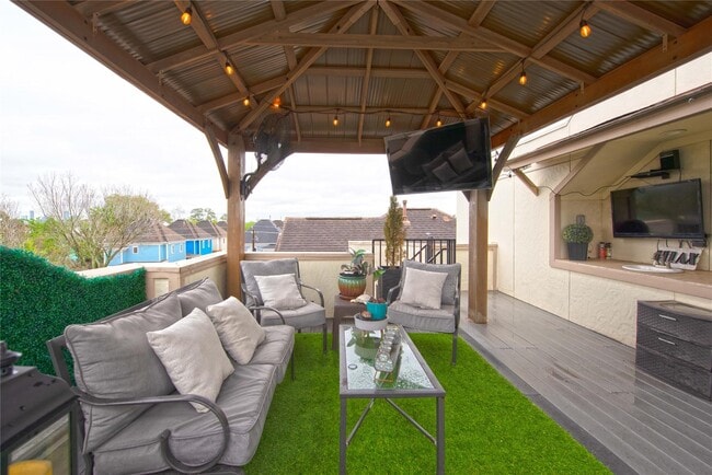 ¡Venga a ver esta belleza de 3 dormitorios, 3 baños y 5 baños hoy mismo! La casa cuenta con techos altos, magníficos pisos de madera y pisos de travertino... envejecido. La amplia sala de estar cuenta con hermosas vigas de imitación madera en el techo y una exclusiva chimenea de azulejos con sistema de sonido. La cocina, que sin duda encantará al chef de su vida, cuenta con electrodomésticos Bosch, cocina de gas, encimeras de granito y una vinoteca con refrigerador para vinos. Disfrute de esas reuniones especiales en su comedor formal. El techo artesonado personalizado le da a la habitación calidez y encanto. El estudio tiene puertas para mayor privacidad y tranquilidad para el miembro de la familia que trabaja desde casa. El dormitorio principal, con sus techos altos, también cuenta con sistema de sonido para su comodidad y disfrute. El baño principal cuenta con una bañera amplia, tocador doble y ducha independiente. Cada dormitorio secundario tiene su propio baño privado. ¡Al final del día, disfrute de la vista desde la azotea! MLS# 53572417