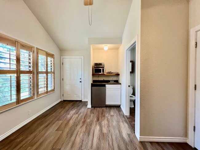 Disfrute de la serenidad de la región montañosa en este acogedor estudio ubicado cerca del cruce entre San Marcos, Wimberley y Canyon Lake, Texas. La cocina... americana cuenta con microondas, horno tostador, hornilla eléctrica doble y mininevera. El apartamento también cuenta con dos terrazas/patios para disfrutar del aire libre. A 21 km de la I-35 en San Marcos, a 11 km de Wimberley y a 16 km de la marina de Canyon Lake. Esta propiedad está ocupada por inquilinos. Por favor, espere 24 horas para visitarla. Puede programar una visita a través de su agente inmobiliario o contactar directamente con nuestra oficina. Para obtener más información sobre la propiedad, nuestra información de contacto o para solicitar este alquiler, visite nuestro sitio web: Tenga en cuenta que solo se aceptarán solicitudes a través de nuestro sitio web.