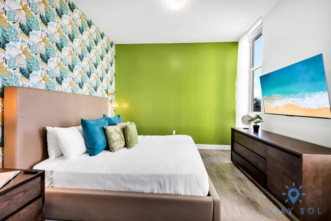 Feel at home in this brand new apartment, steps from the legendary Hollywood Broadwalk. This apartment accommodates up to 4 guests and features a master bedroom with a king-size bed, a living room with a comfortable full pullout sofa bed, and a balcony. No car is needed.