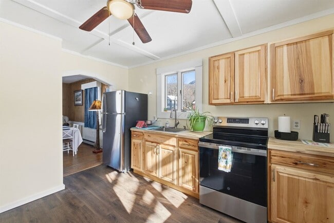 Adventure Awaits in the Western White Mountains! Experience the ultimate move in ready basecamp at our newly renovated 2 Bedroom, 2 Bathroom home in Lincoln,... New Hampshire. Perfectly positioned on the shuttle route to Loon Mountain Resort, this cozy retreat is designed for skiers, snowboarders, and outdoor enthusiasts seeking thrills on the slopes and beyond. Step inside to a comfy-cozy interior with an open-concept living area that is fully furnished with an electric fireplace, a smart Google TV and included high speed internet. A fully equipped kitchen with all new stainless steel and energy efficient appliances, fully stocked with essentials for whipping up hearty meals after a day on the mountain or work. The two spacious bedrooms feature a brand new mattress and queen bed from Cozy Cabin Rustics. Second bedroom has a pull out futon and attached 3/4 bathroom. Both bathrooms have updated fixtures and there is a luxurious jetted Jacuzzi tub in the primary bathroom. Outside the property boasts a private screened in porch, a front yard with excellent locally composted soil for gardening and back yard with free parking for 1 or 2 vehicles. This home is right on the bike/walk path around town, minutes from the Kanc Park and new Skate Park. Washer and Dryer are shared with upstairs tenants as well as the large unfinished basement that you can safely store gear in with private, coded entry. Tenant to put utilities in their name, oil and electric. Security deposit and Rental Application required. Agent owned.