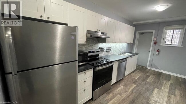 Beautifully maintained one-bedroom apartment located in a convenient Hamilton location! The building is situated on all major bus routes and is just steps from... the downtown core. Numerous grocery options including No Frills and Rexall Pharmacy are within a 5-minute walk of the building. The kitchen boasts a sleek backsplash,immaculate white cabinetry,and stainless steel appliances including a dishwasher. The entire apartment features beautiful vinyl flooring throughout accompanied by lots of window space providing ample natural light. The cheery front sunroom is a great accent feature! One assigned parking spot is available for an additional $50.00/month. Tenant to pay hydro. (id:63800) ID#: 2220612