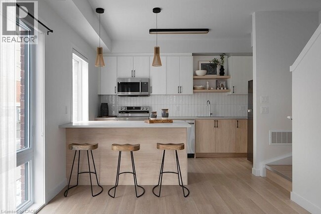 Welcome to this beautifully designed 3-bedroom,2.5-bath stacked townhouse offering modern style,thoughtful finishes,and comfortable living across multiple... levels. The bright,open-concept main floor features a sleek kitchen with contemporary cabinetry,stainless steel appliances,a large island with breakfast seating,and stylish pendant lighting. The kitchen flows seamlessly into the living and dining area,creating a perfect space for both everyday living and entertaining. Clean lines,light wood tones,and black accents give the home a warm,modern feel. Upstairs,you’ll find three well-proportioned bedrooms,including a spacious primary suite with ample closet space and a private ensuite bath. The additional bedrooms are ideal for family,guests,or a home office. A second full bathroom and convenient upper-level laundry add to the functional layout. Quality finishes continue throughout,including modern fixtures,large windows for plenty of natural light,and a neutral palette that suits any décor style. Enjoy outdoor space from private balconies,perfect for morning coffee or evening relaxation. Located in a vibrant,walkable neighbourhood close to shops,dining,transit,and everyday amenities,this stylish stacked townhouse offers low-maintenance living without sacrificing space or comfort. A perfect place to call home. (id:63800) ID#: 2072340