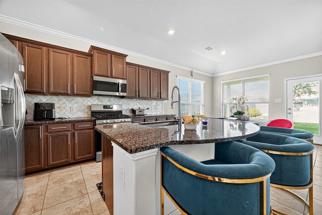 Stunning 2-story Lennar Wi-Fi CERTIFIED Smart Home. Spacious floor plan offers 4 bedrooms and 3 & 1/2 baths,with 2 BR on the first floor and game room and 2 BR... upstairs . Zoned to the highly-regarded Fort Bend Independent School District (FBISD). Chef's kitchen is a highlight,featuring a large island,granite countertops,36'' designer cabinets,and a full suite of stainless steel appliances. Luxurious master suite boasts an elegant,oversized walk-in closet and a spa-like bathroom with a separate shower & soaking tub. Enjoy a covered patio for outdoor relaxation,with extensive tile floors,faux wood blinds,and ceiling fans throughout. Benefit from a pre-installed solar panel system that helps stabilize and reduce monthly overhead. Home is also highly energy-efficient with a 16 SEER HVAC system and radiant barrier roof decking. The property is conveniently located near HEB,a variety of restaurants,and other shopping areas. MLS# 37193992